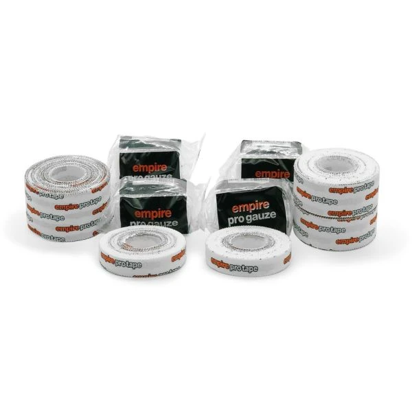 – x4 Empire Boxing Pro Gauze, x1 Empire Printed Pro Hand Tape – 3.8cm, x2 Empire Printed Pro Hand Tape – 2.5cm, x2 Empire Printed Pro Hand Tape – 1.25cm