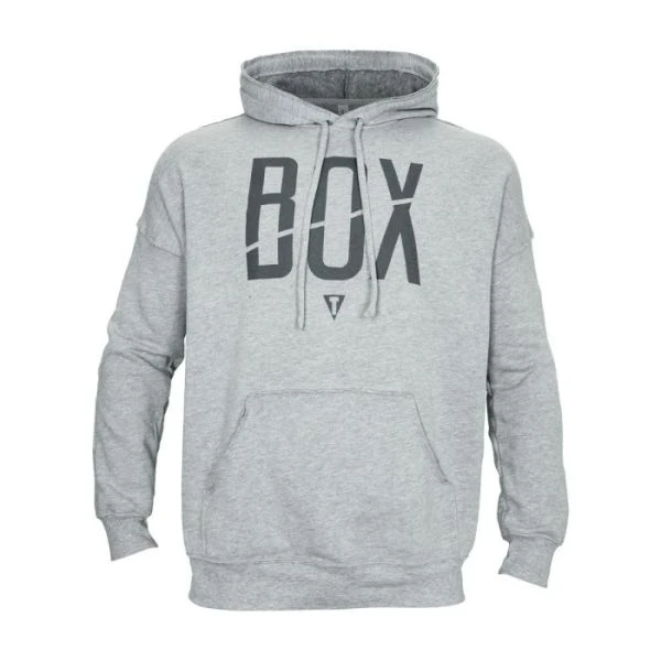 TITLE Boxing Raw Seam Box Hoodie – Oversized fit. Raw seams at shoulders and pocket. Oversized kangaroo pocket. 52% Airlume combed and ring-spun cotton, 48% poly fleece.